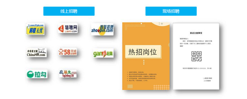 - 招聘网站及企业自身招聘渠道,多种招聘模式,HR招聘效率