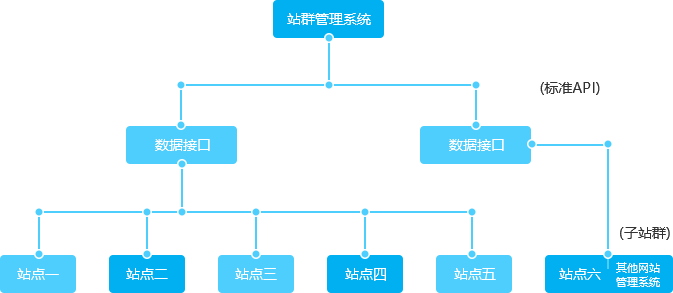 - 通过简单配置标准API接口,就能够增加子站到站群系统中,实现站群的自由扩展
